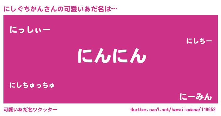 | 男性向けラノベタイトル風あだ名 | 『にしぐちかんの憂鬱』 |
