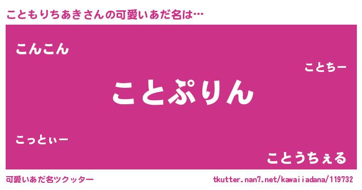 | 恥ずかしいあだ名 | 『プリティーこともりちあき』『ことちん』 |