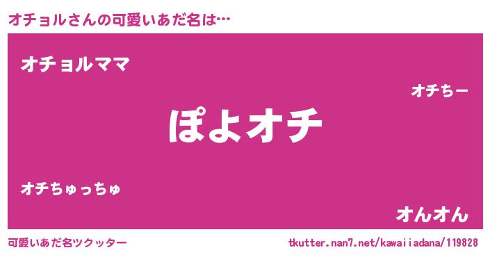 | 恥ずかしいあだ名 | 『オチちん』『プリティーオチョル』 |