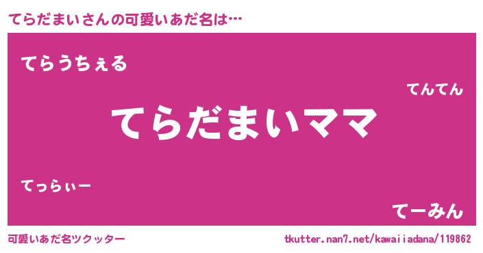 | 意味不明あだ名 | 『永久保存てらだまい』『自称てらだまい』 |