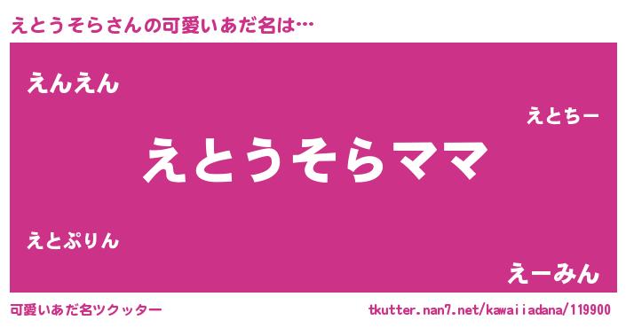 | 恥ずかしいあだ名 | 『えとちん』『プリティーえとうそら』 |