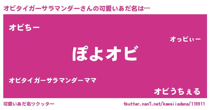| 意味不明あだ名 | 『住所不定無職オビタイガーサラマンダー(84歳)』 |