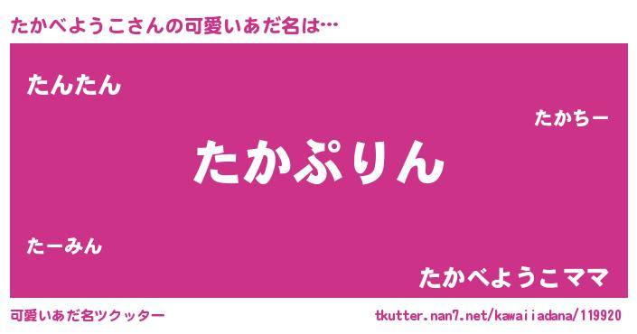 | ヘコむあだ名 | 『たかにゅー』『たかべようこ(苦笑)』 |