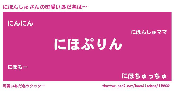 | ヘコむあだ名 | 『にほっふぃ~』『にほんしゅ(笑)』 |