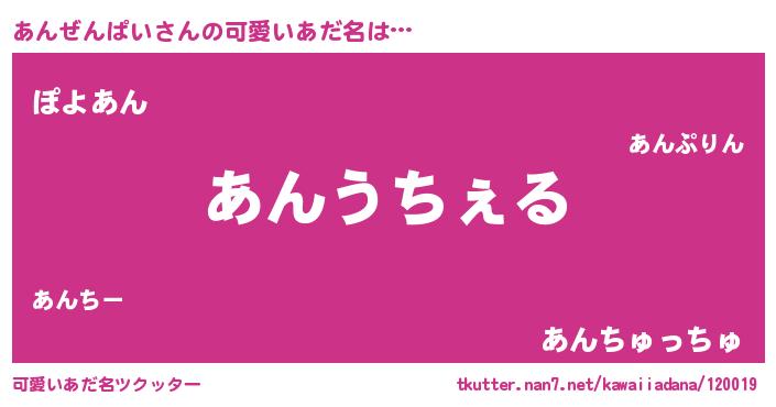 | 恥ずかしいあだ名 | 『アンゼンパイデラックス』『あんっちょ』 |