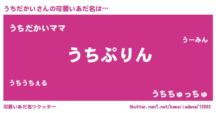 | 女子向けラノベタイトル風あだ名 | 『うちだかいの玉の輿計画!』 |