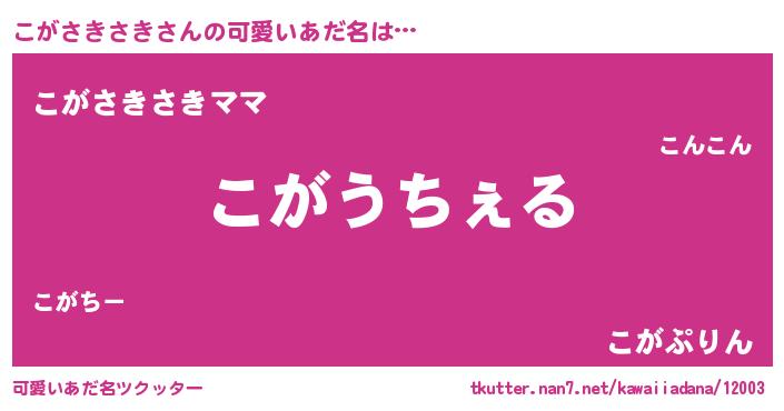 | 女子向けラノベタイトル風あだ名 | 『こがさきさきなんてお断りですっ。』 |