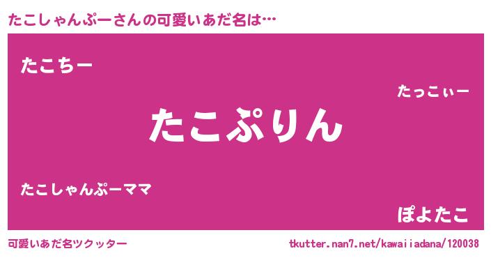 | 男性向けラノベタイトル風あだ名 | 『転生したらたこしゃんぷーだった件』 |