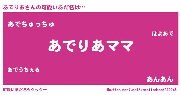 | 意味不明あだ名 | 『永久保存あでりあ』『ペロリンあでりあ』 |