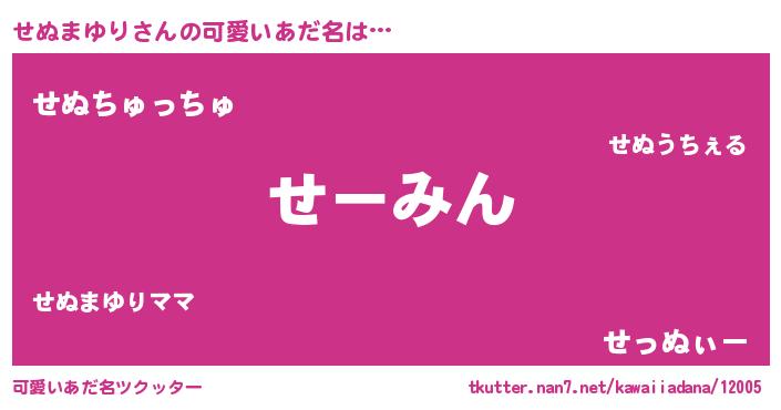 | 意味不明あだ名 | 『眠気覚ましガムせぬまゆり味』 |