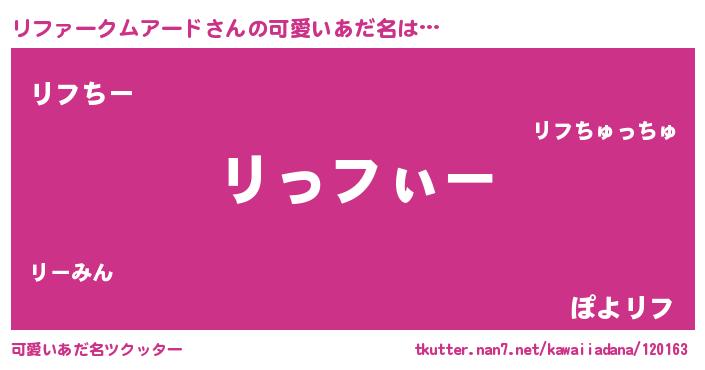 | 男性向けラノベタイトル風あだ名 | 『リファークムアードの嫁は女の子じゃないと思った?』 |