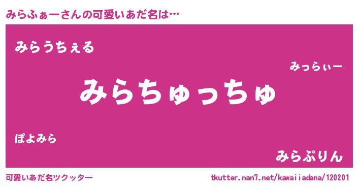 | ヒーロー風カッコイイあだ名 | 『愛の使者みらふぁー』『黄金騎士ミラ』 |