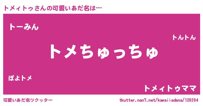 | ヘコむあだ名 | 『トメィトゥ(笑)』『トメにー』 |