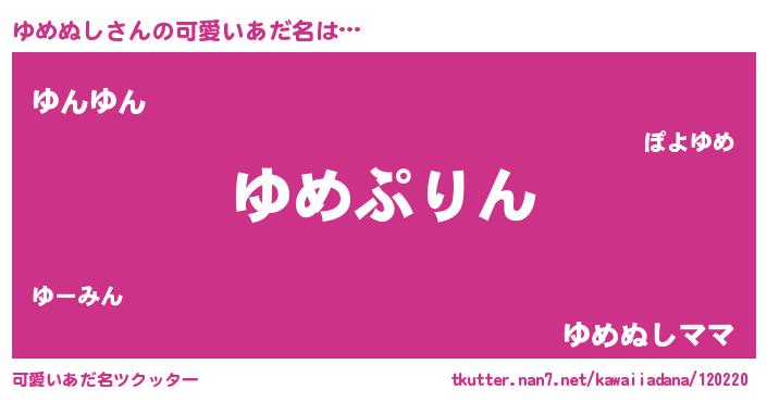 | ヘコむあだ名 | 『ゆめにゅー』『ゆめぬし(震え声)』 |