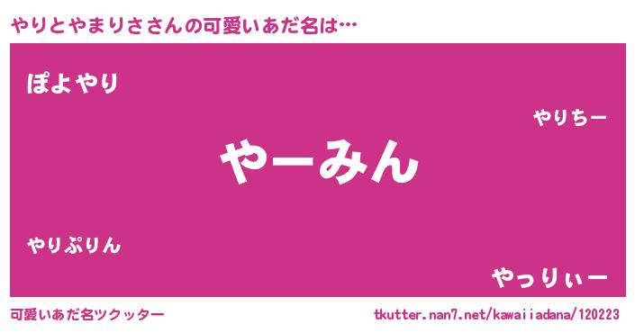 | 意味不明あだ名 | 『住所不定無職やりとやまりさ(7歳)』 |