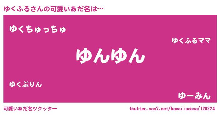 | 意味不明あだ名 | 『ペロリンゆくふる』『永久保存ゆくふる』 |