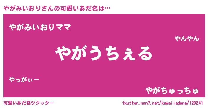 | ヘコむあだ名 | 『やがみいおり(爆)』『やがにゅー』 |