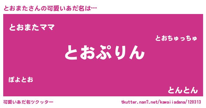 | ヘコむあだ名 | 『とおまた(笑)』『とおふぇ~』 |