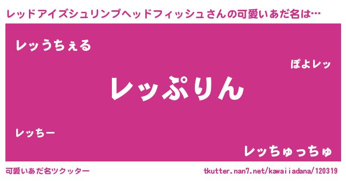 | 女子向けラノベタイトル風あだ名 | 『レッドアイズシュリンプヘッドフィッシュの玉の輿計画!』 |