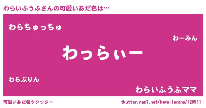 | ポケモン風あだ名 | 『ヒワライフウフ』『ワックウザ』 |