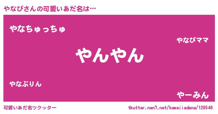 | ヒーロー風カッコイイあだ名 | 『スーパーヤナピ』『天空の使者やなぴ』 |