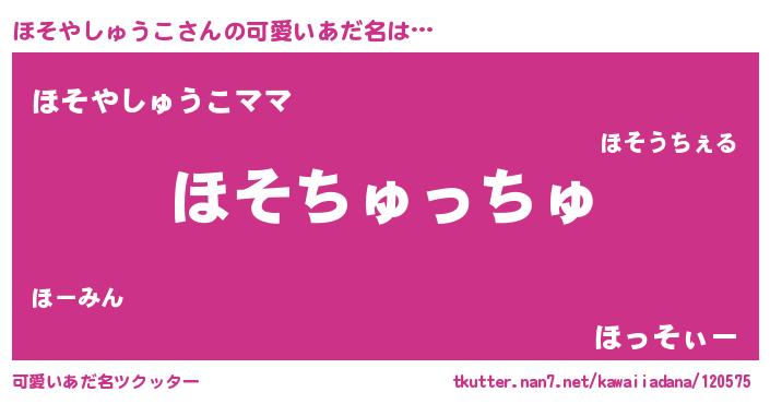 | ヘコむあだ名 | 『ほそやしゅうこ(小並感)』『ほそお』 |