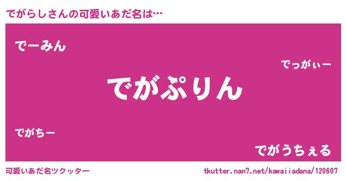 | ヘコむあだ名 | 『でが太郎』『豆乳』『でがらし(爆)』 |