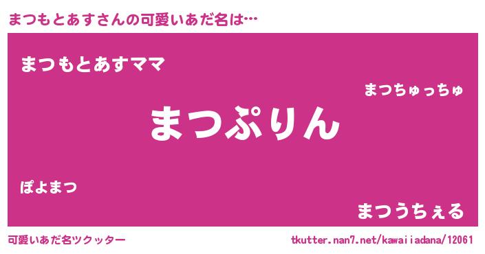 | ファンタジー風あだ名 | 『ユリマツヴァット』『マツディッシュ』 |
