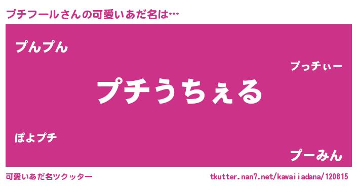 | 意味不明あだ名 | 『自称プチフール』『ペロリンプチフール』 |