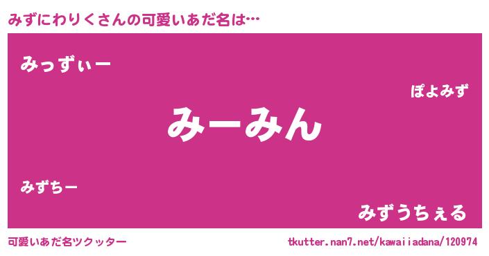| ヘコむあだ名 | 『みずぷりん』『牛乳』『みずふぇ~』 |