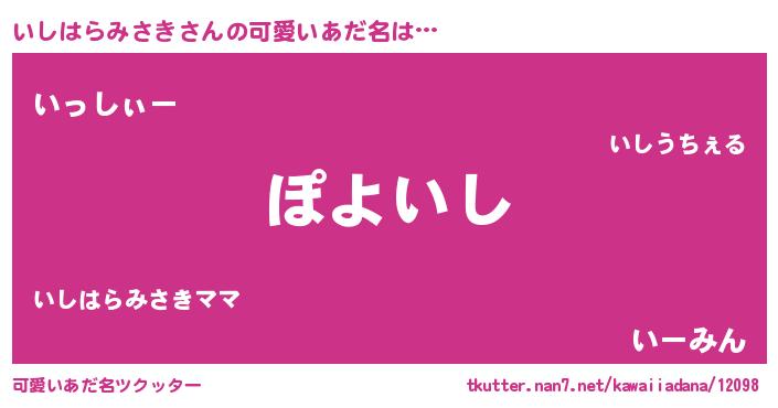 | ヘコむあだ名 | 『いしぷりん』『いしはらみさき(小並感)』 |