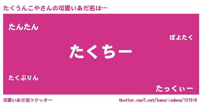 | 女子向けラノベタイトル風あだ名 | 『たくうんこやの雑貨屋さん』 |