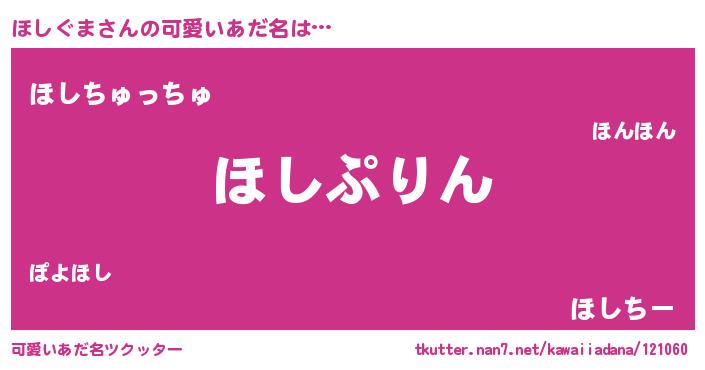 | ヒーロー風カッコイイあだ名 | 『天空の使者ほしぐま』『仮面ホシダー』 |