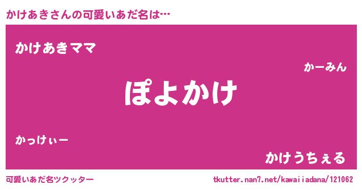 | ヘコむあだ名 | 『かけあき(震え声)』『かけぷりん』 |
