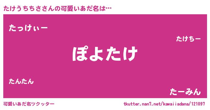 | ヘコむあだ名 | 『たけを』『なまこ酢』『たけもー』 |