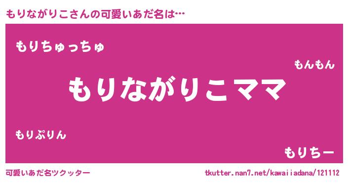 | 意味不明あだ名 | 『永久保存もりながりこ』 |