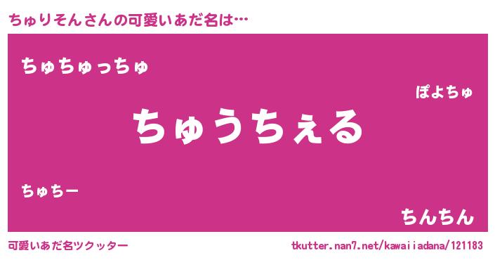 | 意味不明あだ名 | 『自称ちゅりそん』『ペロリンちゅりそん』 |