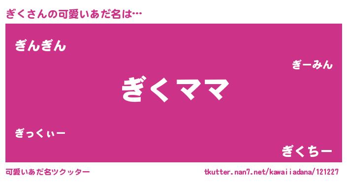 | ヘコむあだ名 | 『ぎく(笑)』『ぎくふぇ~』『つくし』 |