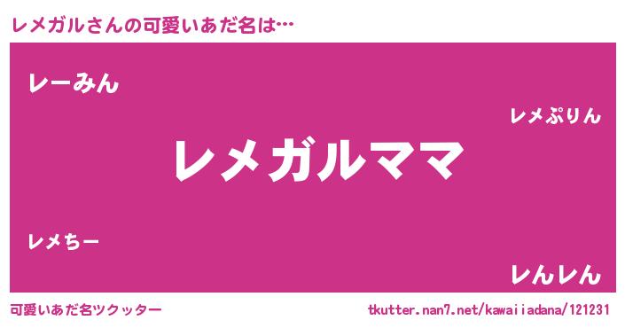 | 意味不明あだ名 | 『永久保存レメガル』『ペロリンレメガル』 |