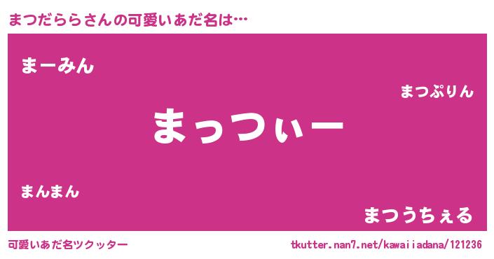 | 意味不明あだ名 | 『とにかく怪しいまつだらら』 |