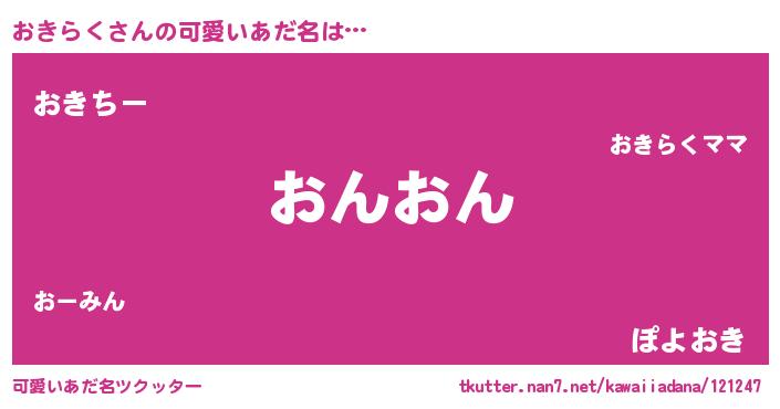 | 意味不明あだ名 | 『ペロリンおきらく』『永久保存おきらく』 |