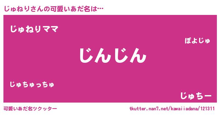 | 恥ずかしいあだ名 | 『プリティーじゅねり』『じゅちん』 |