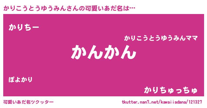 | ヘコむあだ名 | 『かりもー』『酢こんぶ』『かりを』 |