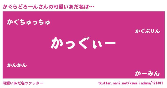 | 男性向けラノベタイトル風あだ名 | 『ダンジョンにかぐらどろーんを求めるのは間違っているだろうか』 |