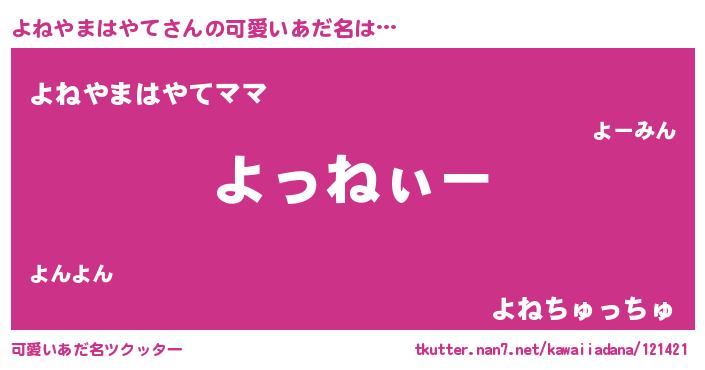 | 欧米人風あだ名 | 『アンジェラ・よねやまはやて』 |