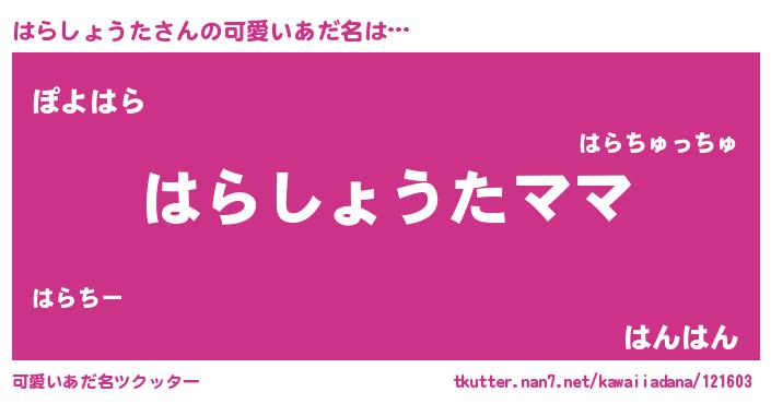 | ヘコむあだ名 | 『はらしょうた(苦笑)』『はらっふぃ~』 |