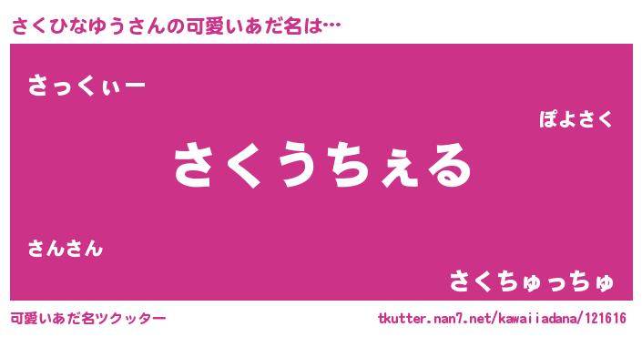 | 意味不明あだ名 | 『自称さくひなゆう』 |