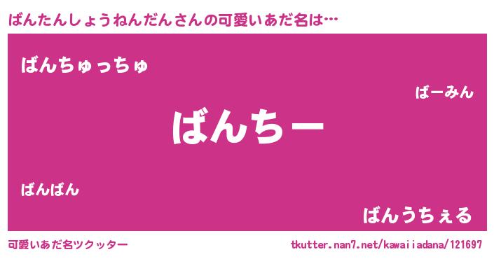 | ヘコむあだ名 | 『酢こんぶ』『ばんにー』『ばんお』 |