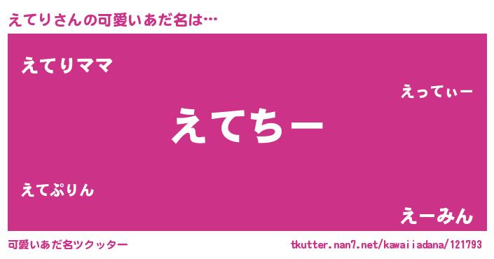 | 意味不明あだ名 | 『えてりフォーエバー』『永久保存えてり』 |