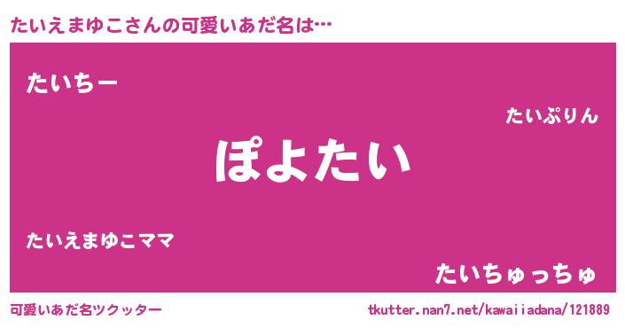 | ヘコむあだ名 | 『なまこ酢』『たいえまゆこ(爆)』 |